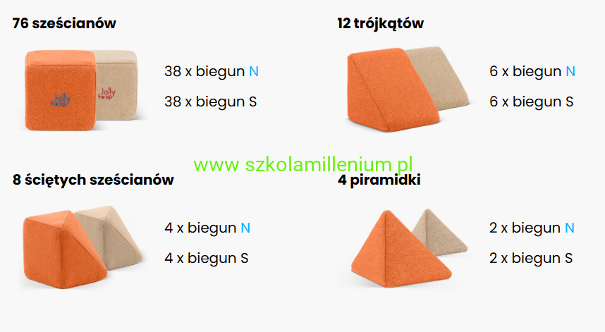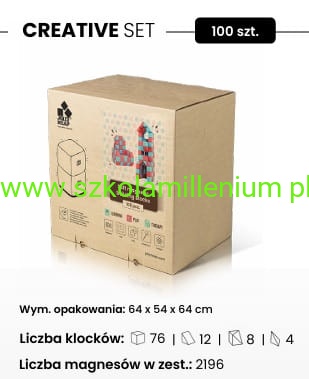Idealny zestaw dla szkoły, przedszkola, żłobka. Odpowiedni dla: 2-4 dzieci bawiących się jednocześnie. Zestaw składa się z 100 klocków magnetycznych w 4 kształtach co pozwala swobodnie budować figury, kryjówki, obiekty do ćwiczeń, czy meble.